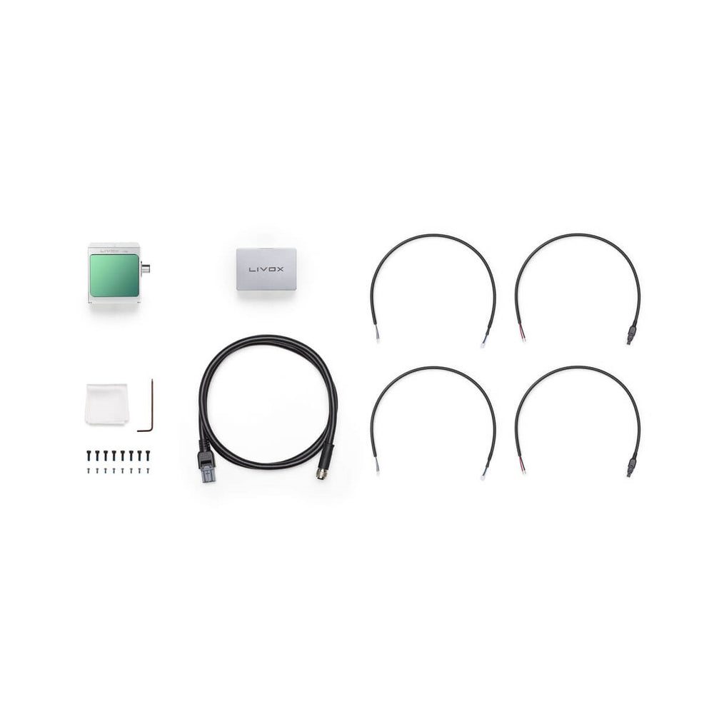The Livox Avia can be connected using a common conversion cable. It also comes with M12 circular connectors, useful for situations where space is limited for embedding the sensor.